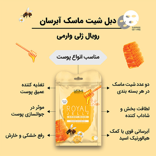 سایر توضیحاتویژگیهای اصلی دبل شیت ماسک آبرسان رویال ژلی وارمی